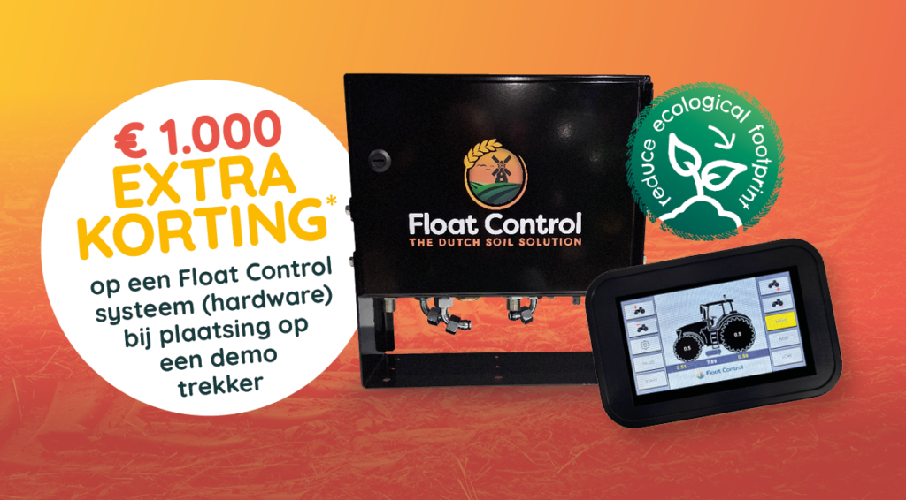 Wij introduceren nu een tijdelijke en exclusieve dealeractie, speciaal voor landbouwmechanisatiebedrijven in Nederland en Vlaanderen met wel € 1.000,- extra korting op één Float Control systeem (hardware) bij plaatsing op een demo-trekker*